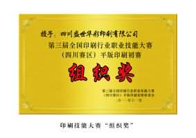 2011年獲得全國印刷行業職業技能大賽(四川賽區)平版印刷初賽組織獎